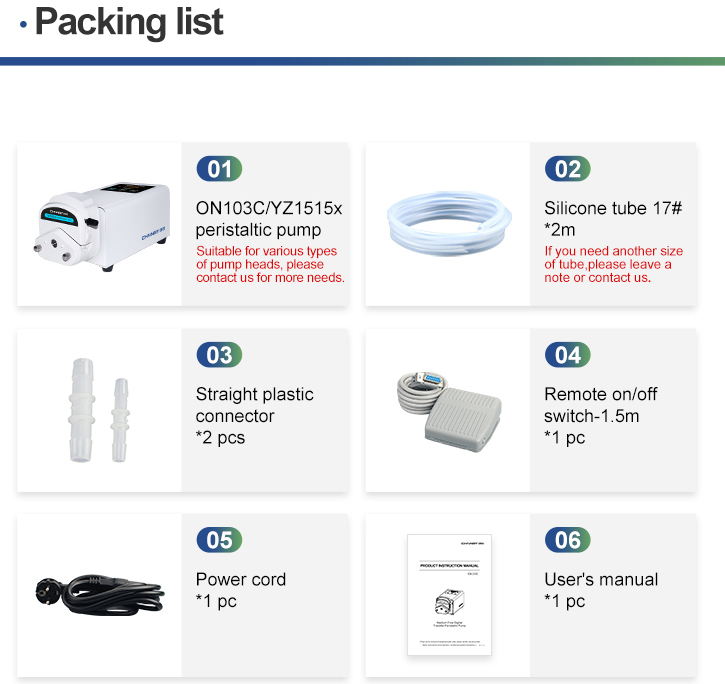 - ON103C is the benchtop peristaltic pump with small size saving space. This pump is a low flow rate peristaltic pump with 380ml/min.